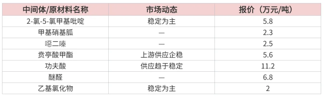 上游中间体和原材料陆续出现波动,供需博弈,需密切关注各产品主要中间体动态。