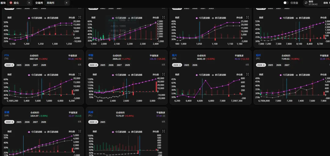 回到当前市场,我们重点盯紧欧线、原油、燃油、LPG这些强逻辑核心品种的筹码结构。一旦出现资金松动、情绪退潮信号,立刻转向时间价值更匮乏、跟风属性更强的郑州化工品种,坚定做空波动率。