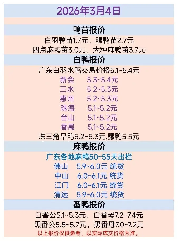 2026年3月4日鸭苗、毛鸭行情早报:鸭苗上行为主,毛鸭局部上调