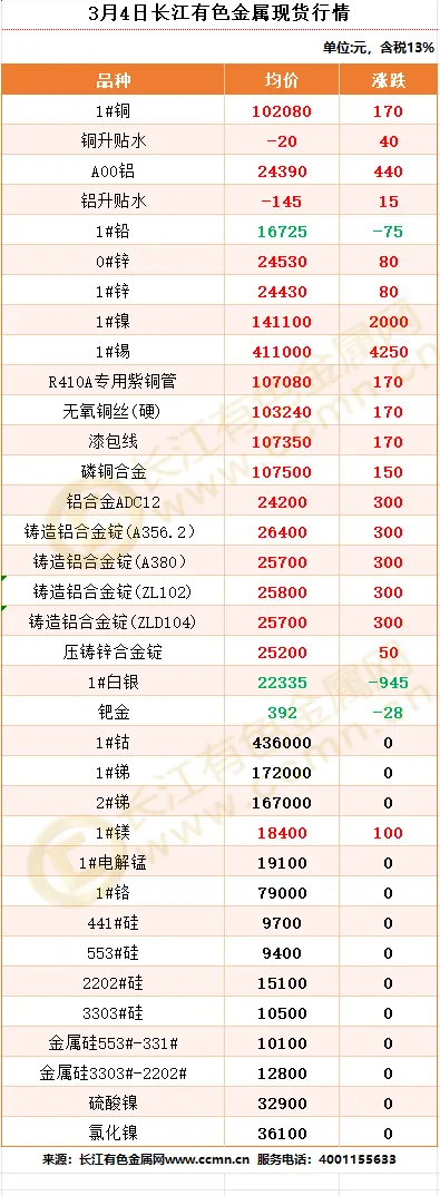 >3月4日长江有色金属现货行情