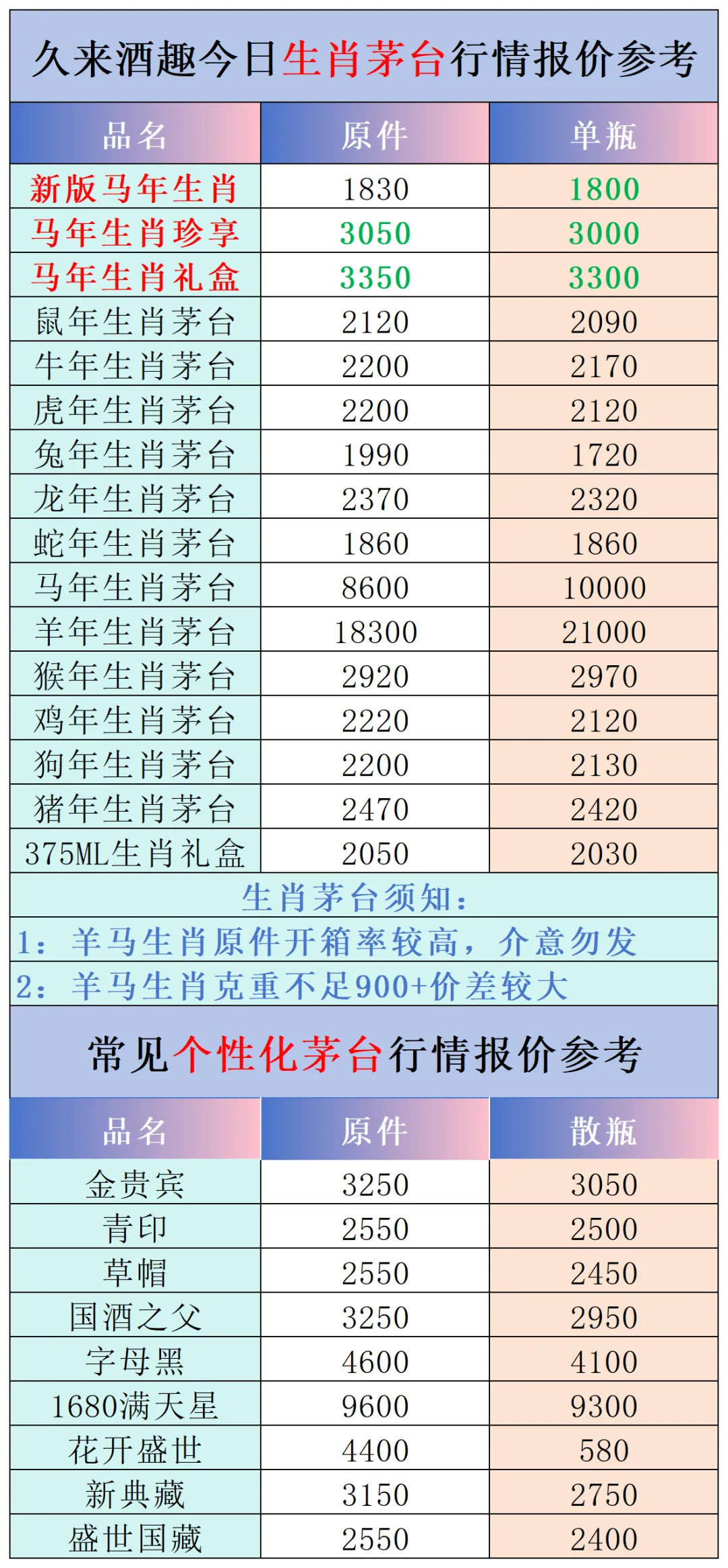 本公众号提供各种名酒回收行情报价,常规茅台、五粮液、洋河、剑南春、国缘等。所有报价根据市场买卖行情总结而来,每天更新最新报价!部分酒水每天涨跌幅较大,无法及时更新请谅解。本报价仅供参考,并非实际成交价格。感谢您的关注!我们会竭尽所能,提供更多更好的服务。