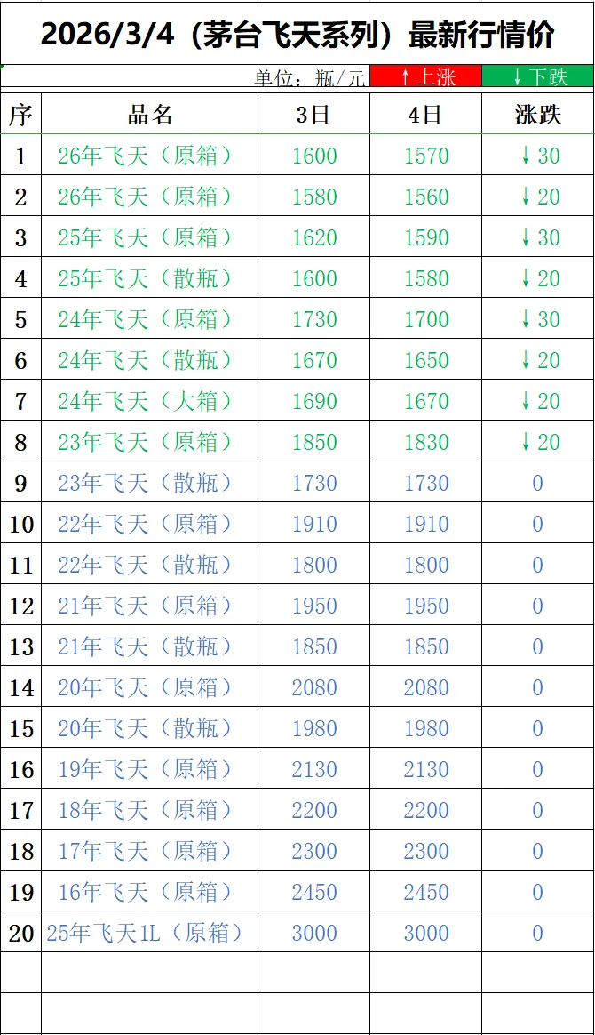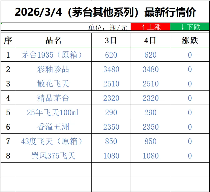 (请持续关注本平台,每日持续更新茅台酒最新行情价)