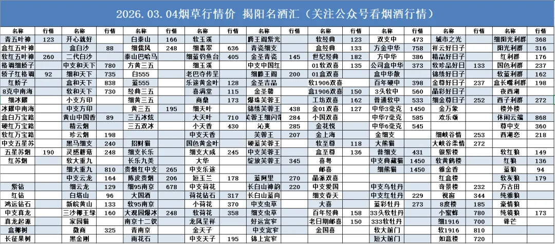 3月4日茅台名酒行情价,飞天持续下跌!