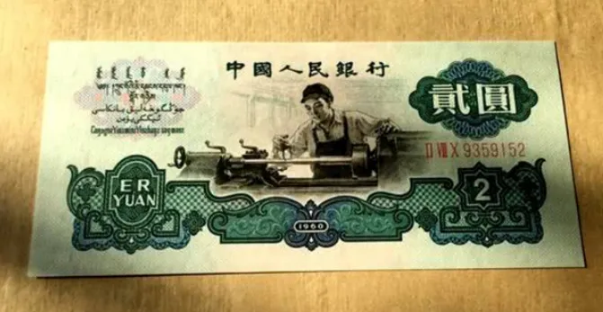这张 纸币 在民间通常被叫作" 车工两元",是一个很直白的命名逻辑,图案即名字,没有额外的修饰。