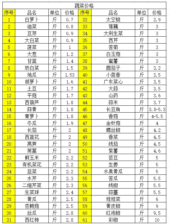 1、蔬菜价格