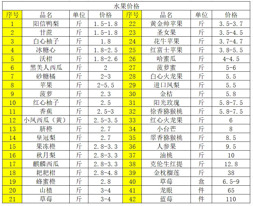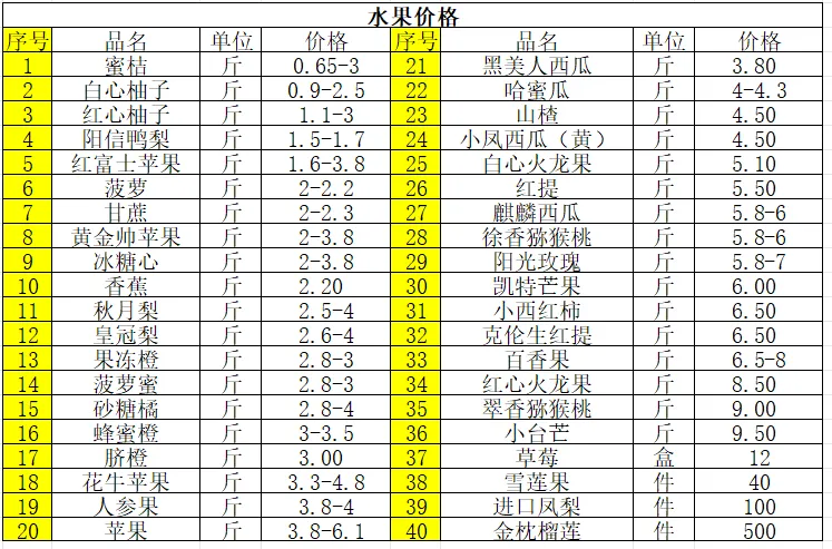 2、水果价格