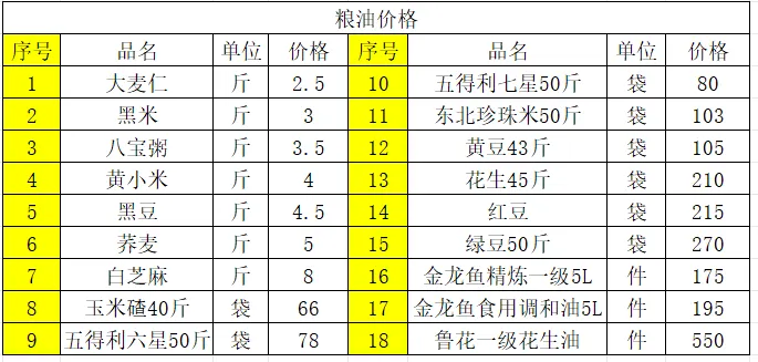 3、粮油价格