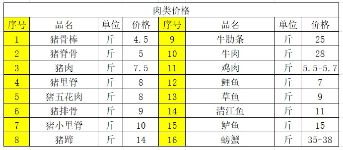 5、肉类价格