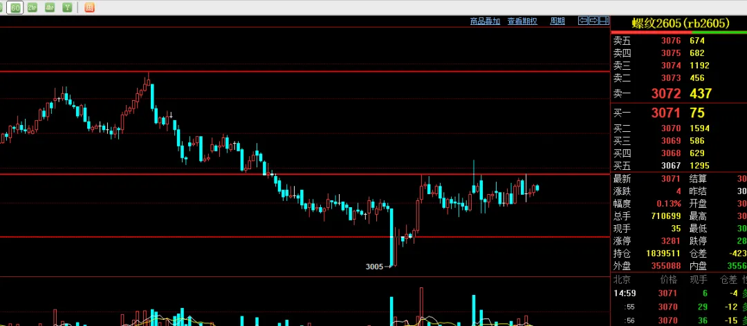 目前行情黑色螺纹整体震荡看待,3100目前震荡上沿可以重点关注遇阻反弹继续试试空单暂时可以看成多空分界线,等回调到3050到3030附近继续回调企稳多单参与,低多高空为主,2605橡胶小时线;短线来看目前继续震荡调整偏多看待。