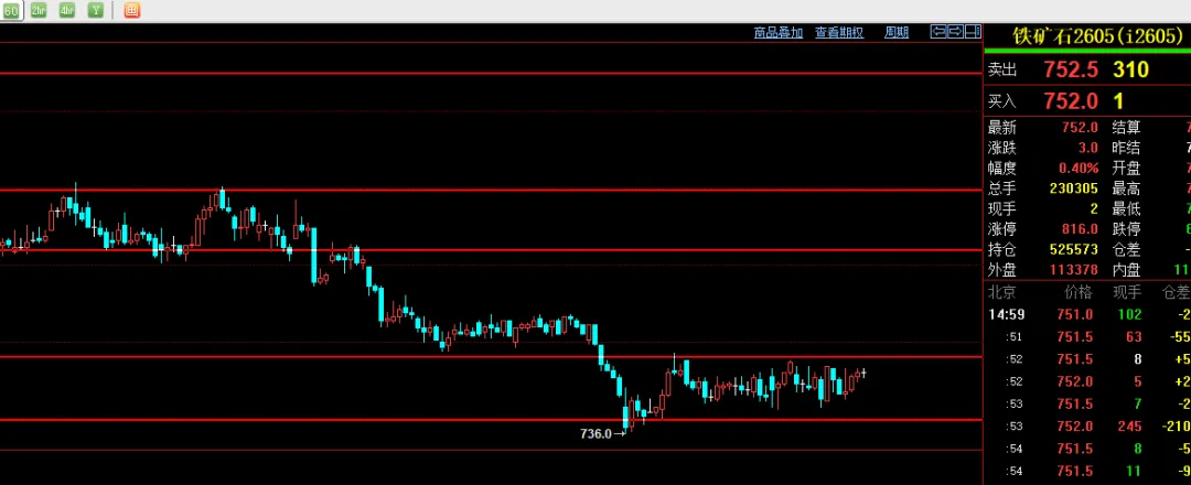 目前有色镍今天继续箱体震荡偏多行情,等下方支撑回调到135000附近支撑到回调136500附近企稳也可以继续尝试反弹,目前建议继续回调低多为主,上方压力143000反弹遇阻可以试试回调突破则继续看多为主,整体暂时看震荡偏多,2605铁矿小时线;目前震荡偏多看待。