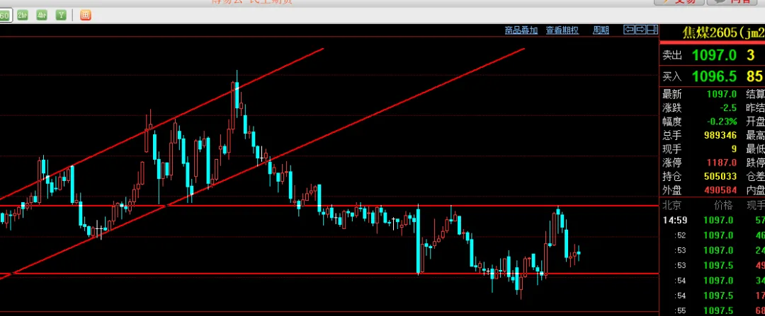 最近化工是市场的明星品种基本都触及涨停和涨停。之前也是一直建议化工回调企稳试试多单,PTA等回调到5500到5570附近继续回调企稳试试多单,激进的等5600回调支撑企稳也继续试试多单的思路。化工还是低多为主。2605焦煤小时线;短线来看目前低位箱体震荡偏空看待。目前焦煤整体沿着趋势线反弹空为主,等上方反弹到压力1130附近到1120附近不突破建议反弹试试空单,下方支撑1180跌破也继续偏空看待。2605豆油小时线;短线来看目前震荡偏多看待。