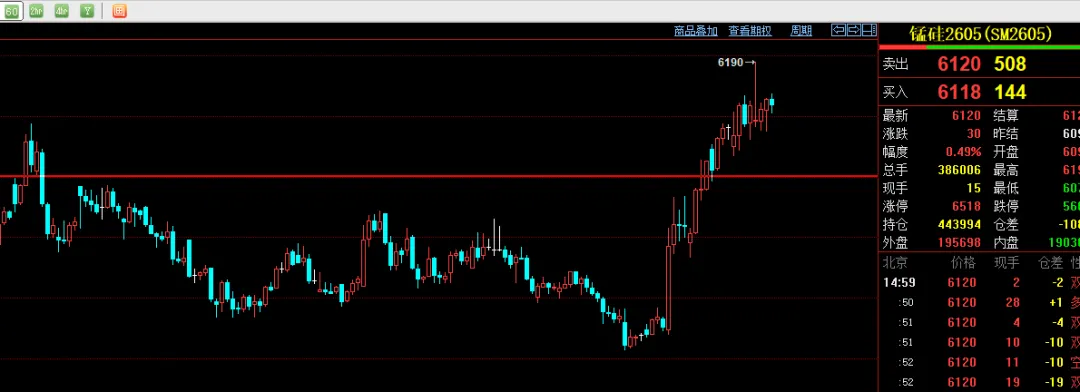目前油脂整体还是偏多看待,下方再次回调到8300到8330附近回调企稳再次尝试多单,稳健的等8250附近可以回调企稳再次试试反弹,目前建议低多为主。上方压力8400突破站稳则也继续偏多看待。2605锰硅小时线;目前偏多看待。