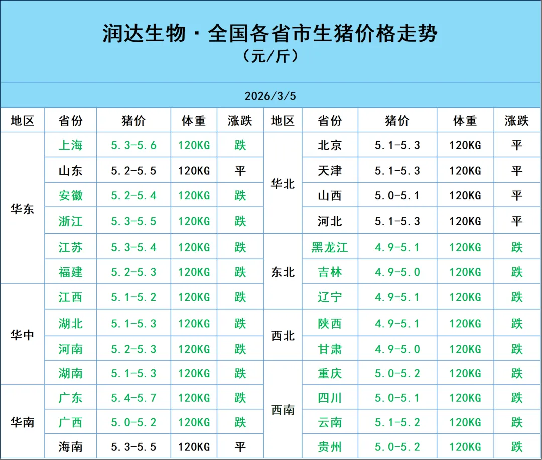 2026年3月5日明日猪价行情:多地猪价趋稳!
