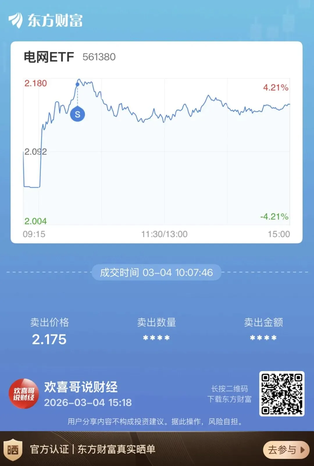今天金融板块并没有出现一个显著的护盘动作,也是要情绪得到释放,从下跌幅度看都还比较有限,东财三天有差不多8个点的跌幅,是需要一个短期反抽的,所以在21之下去搏个反抽我认为没什么问题的,我今天是拿了一点小仓位等到反抽就出来,这是个继续向下做成本的机会。今天持仓中走势比较强的是电网设备,上午相对高点我减出来一部分,计划是砸下去的时候再接回,看接下来几天给不给机会。今天持仓中有几个品种都有要修复的动作,有的比较成功,像三花收涨2个点,有的就要差一些,像光伏就是两次上冲被压了下来,其实这个时候都不用着急,修复有先有后,有强有弱势很正常的,因为下跌的时候放量,现在修复就是缩量状态,修复就需要一个过程。(个人观点 仅供参考 不做建议)