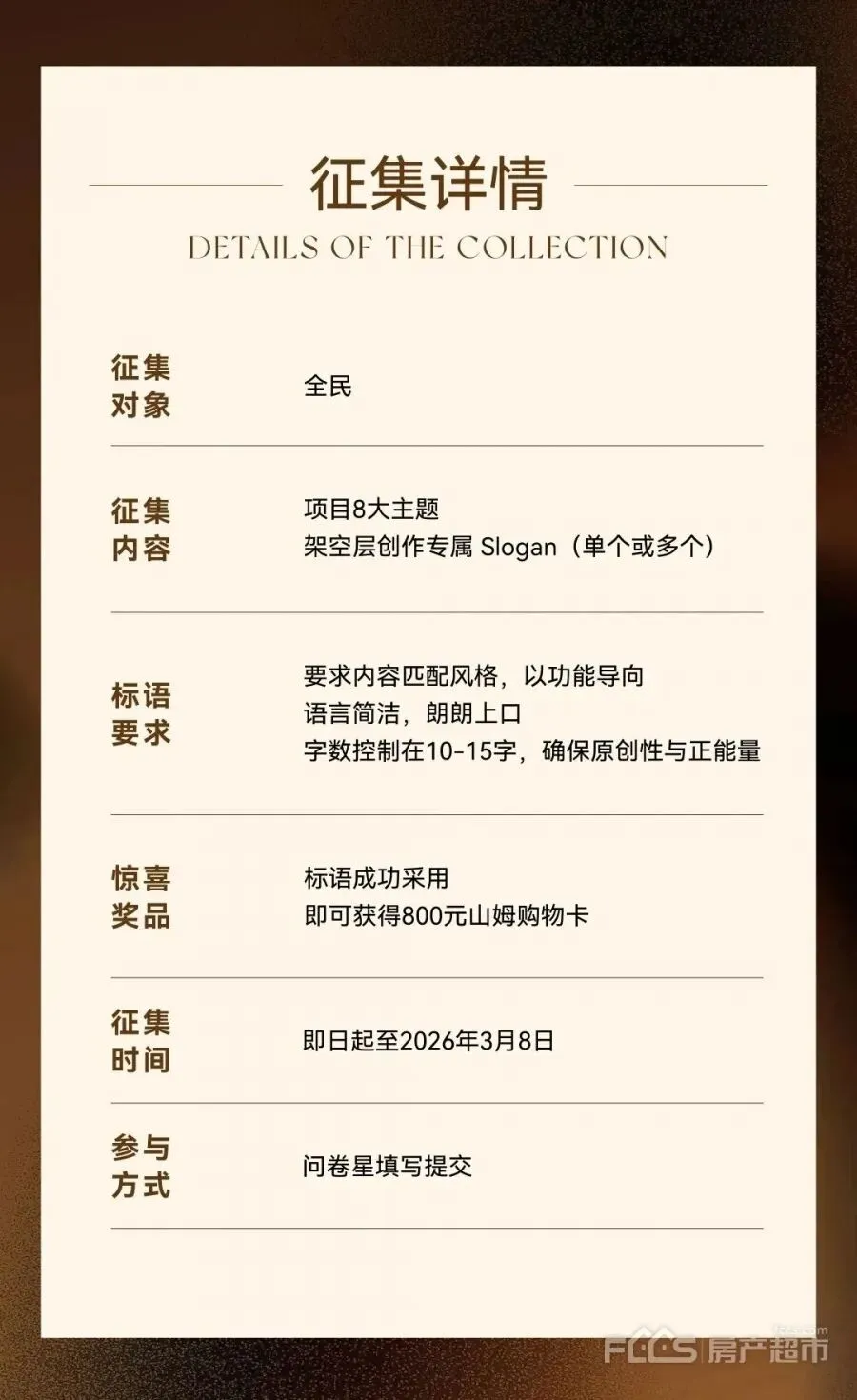 3、玖晟园八大架空层Slogan征集,赢山姆购物卡