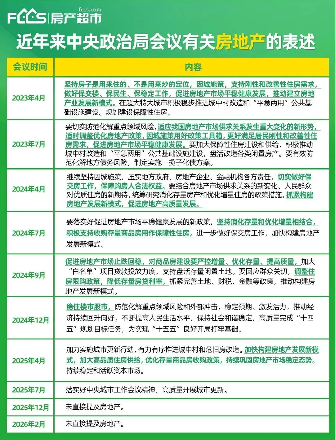复盘近年来中央政治局会议有关“房地产”的表述中,已连续两次没有明确提及“房地产”,有业内专家认为“政策底”已出现,“市场底”有望迎来确认。【详情】