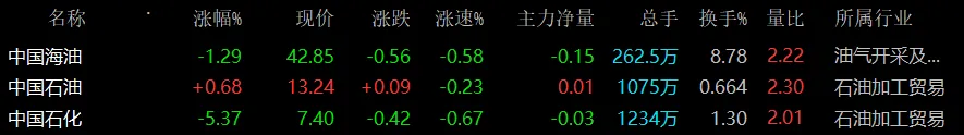 01 收盘数据:三桶油分化,中国石油逆势创历史
