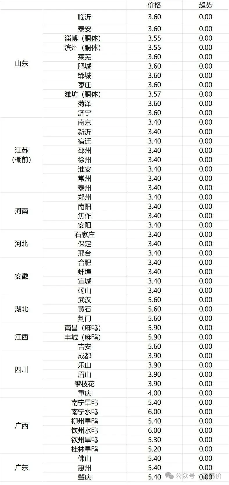 微评:鸭苗报价稳定。(注:南方只报当天价格)市场情绪一般,交投平淡。根据产品、养殖成本及鸭苗现状分析,预计近期鸭苗价格呈震荡微调趋势。种蛋报价稳定。温馨提示:该价格为主流厂家报价,实际销售价格以成交价格为准,价格仅供参考。