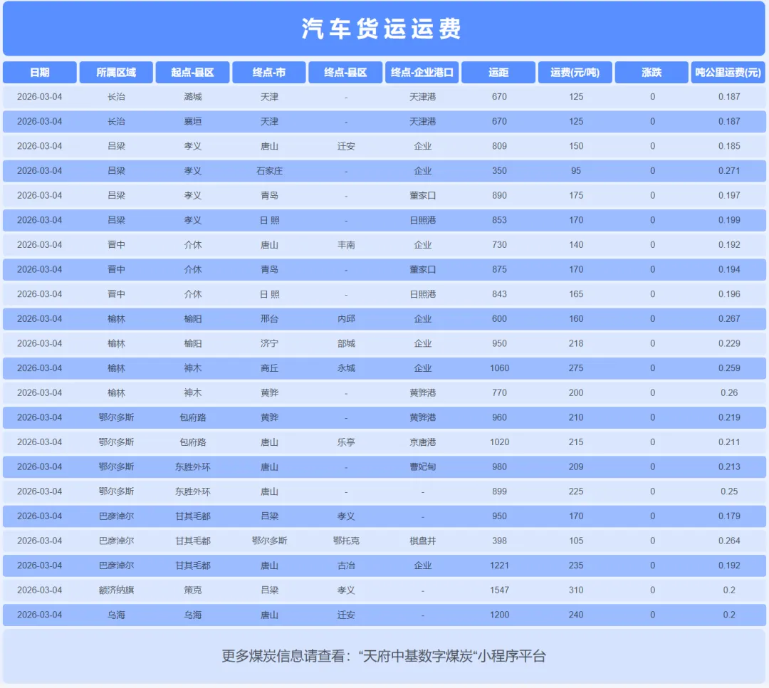 2026年3月4日,焦煤市场延续 “优质资源领跌,成本支撑松动” 的弱势格局。监测数据显示,山西低硫主焦煤出厂含税价再度下跌34元/吨至1459元/吨,自3月2日以来累计跌幅已达94元/吨;进口蒙煤同步走弱,甘其毛都蒙5#原煤价格回落13元/吨至1016元/吨。与此同时,焦炭现货价格虽暂时持稳,但河北唐山、邢台、天津等地部分主流钢厂已正式对焦炭采购价开启首轮提降50-55元/吨,将于3月6日执行。这标志着产业链负反馈压力正从焦煤端明确传导至焦炭环节。