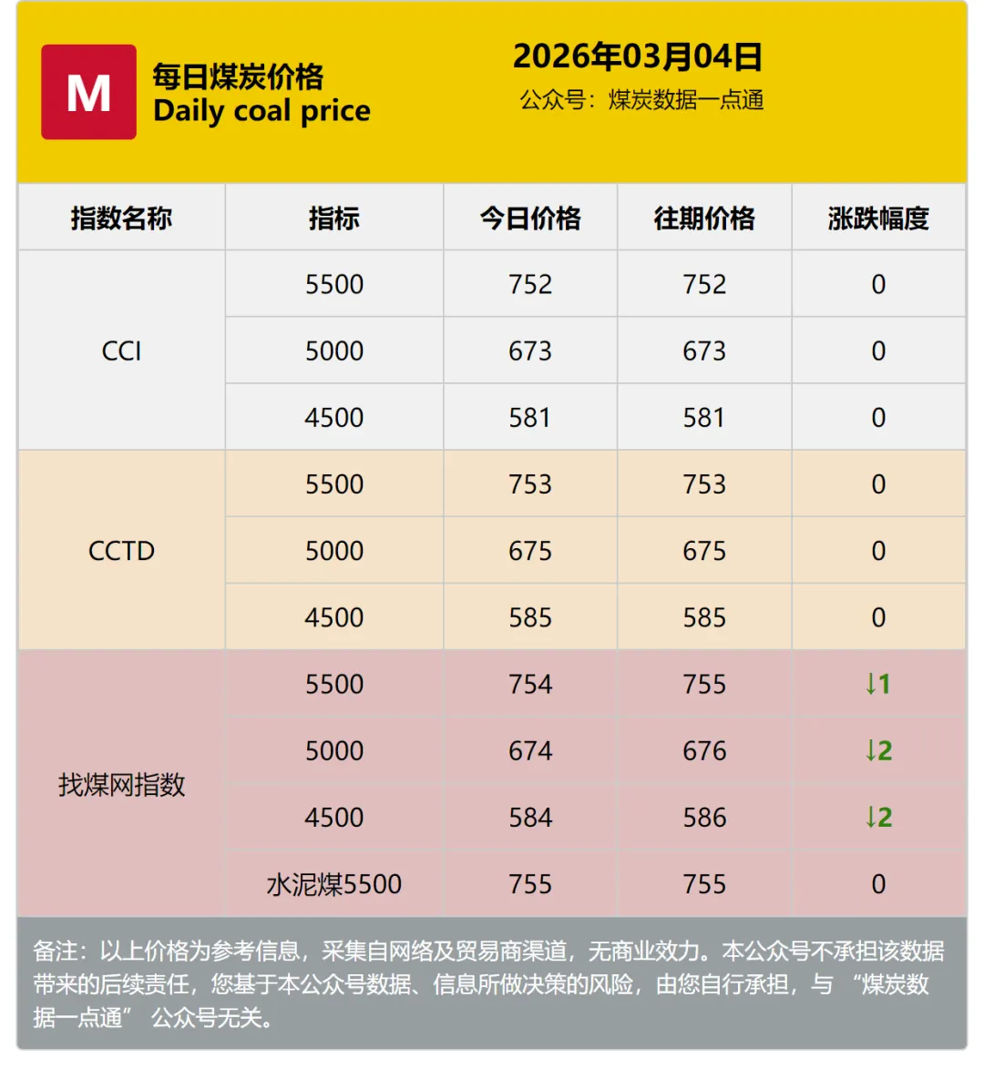 当前位置:首页>行情>2026年03月04日动力煤市场行情:产地偏强、港口清淡、进口高位趋稳