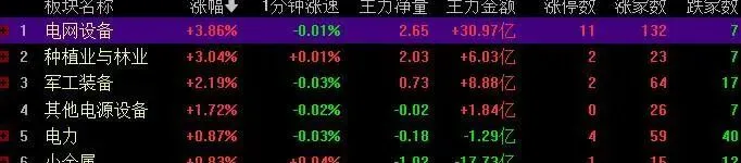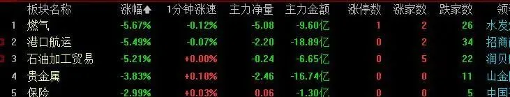 尾盘板块,电网设备第一,燃气,港口航运倒数第一