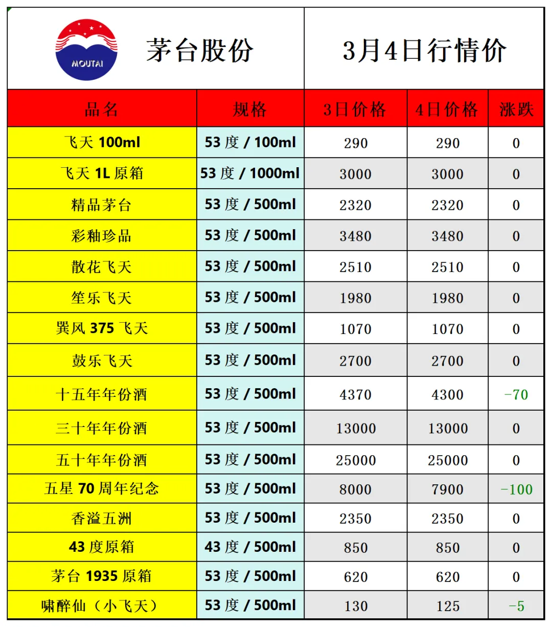 因各地行情有所不同,价格仅供参考!每天更新茅台价格,飞天茅台相关热点资讯,由于平台修改了推送规则,如若不想错过白酒市场行情报价参考, 请点击文章右下角的“在看”,推送会第一时间出现在订阅列表里,谢谢各位茅粉!