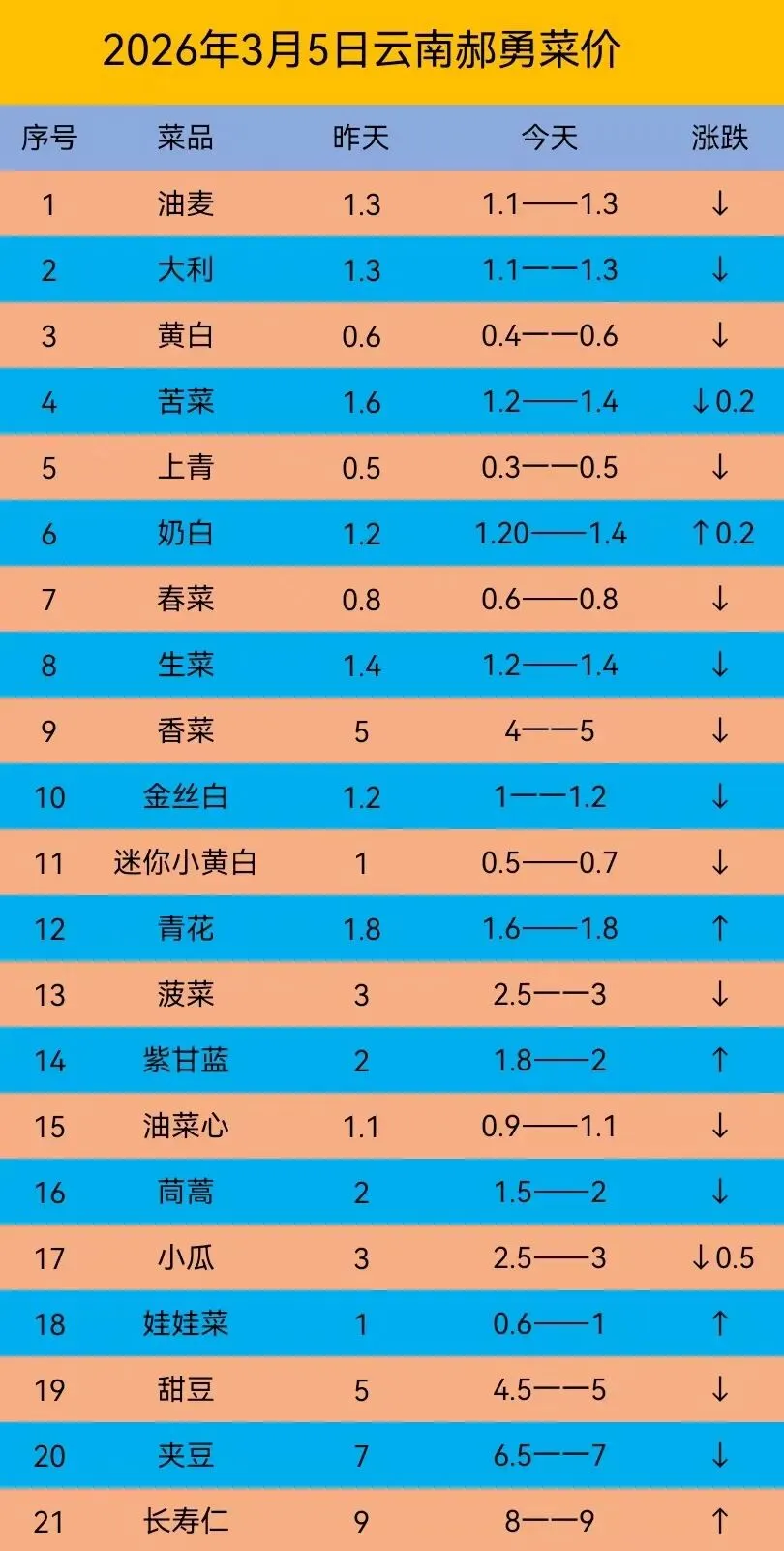 一、油麦菜:今天价格持平。