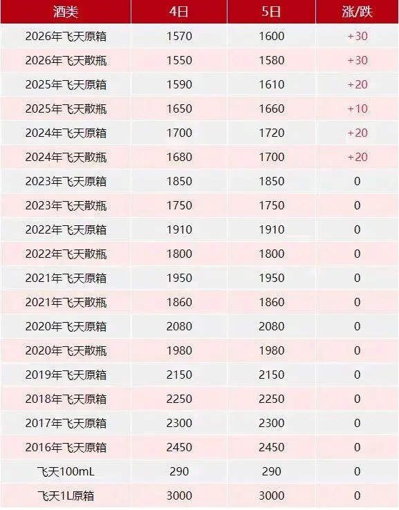 飞天价格上涨!3月5号酒价行情