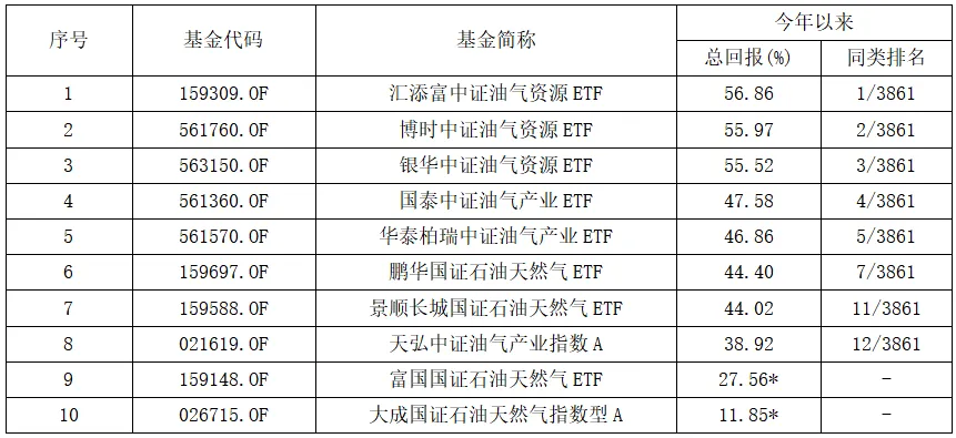 表格系跟踪三大油气指数的ETF产品(不含联接基金)