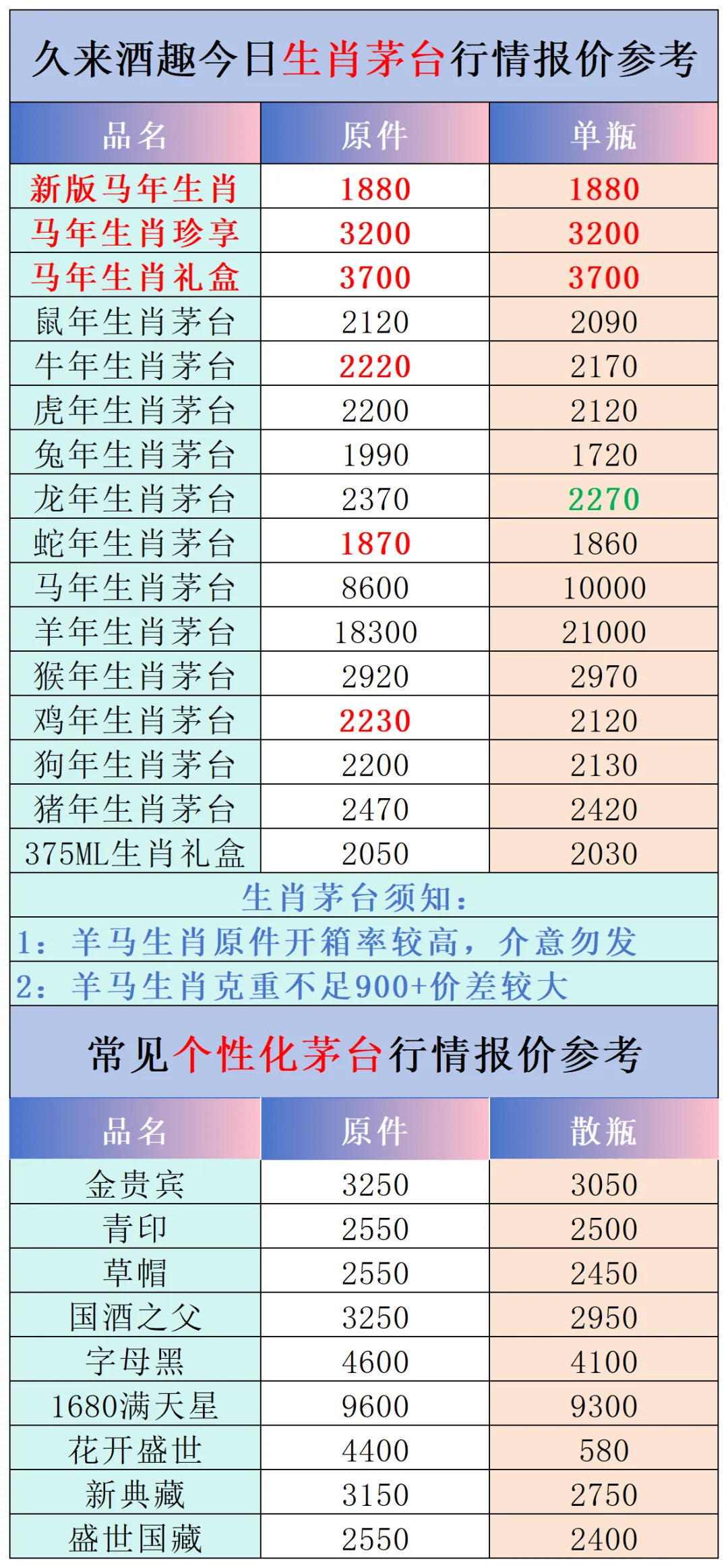 本公众号提供各种名酒回收行情报价,常规茅台、五粮液、洋河、剑南春、国缘等。所有报价根据市场买卖行情总结而来,每天更新最新报价!部分酒水每天涨跌幅较大,无法及时更新请谅解。本报价仅供参考,并非实际成交价格。感谢您的关注!我们会竭尽所能,提供更多更好的服务。
