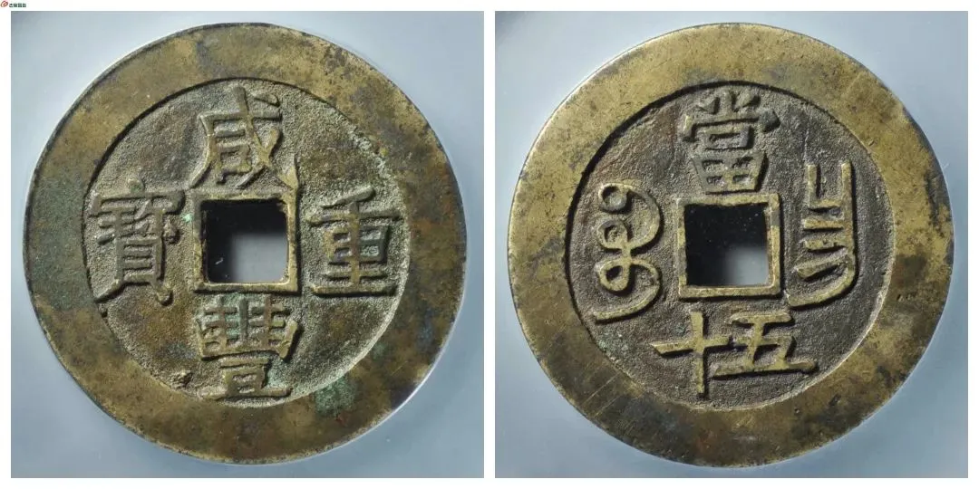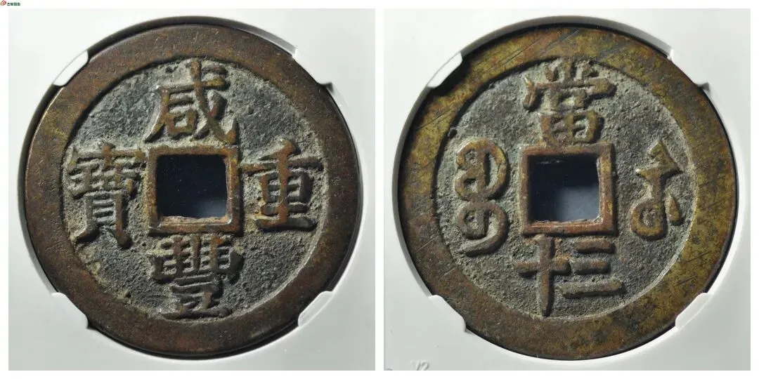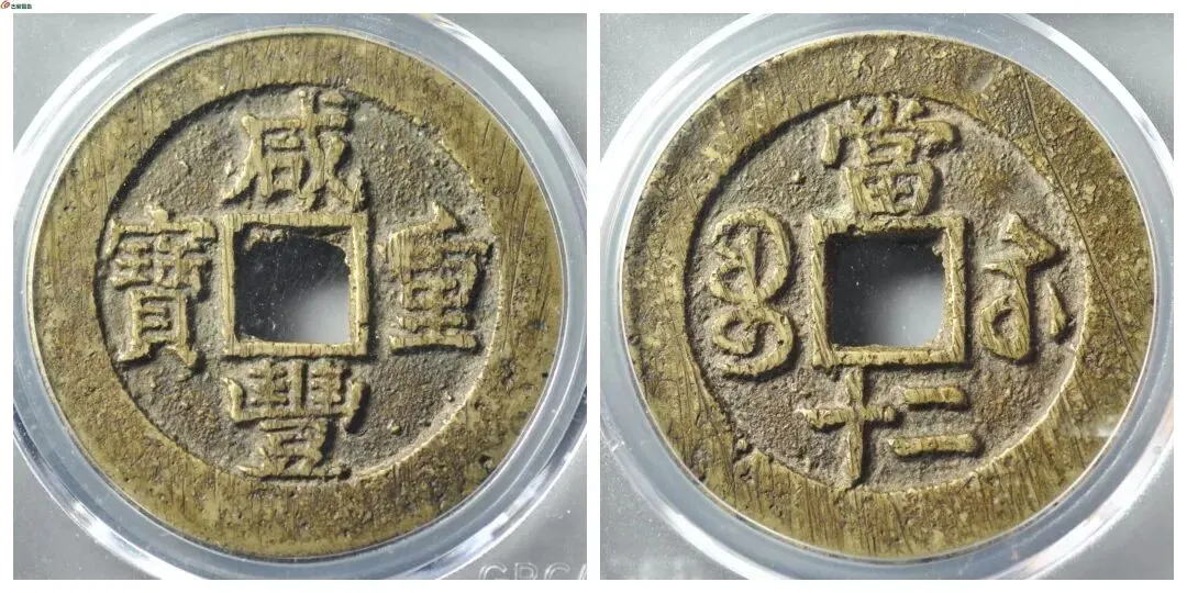 咸丰钱这个月成交量无明显变化 但拍品等级不高 盘整之象十分明显 我手里那几枚咸丰大钱 这个月价格也没怎么变 藏家说 咸丰大钱是最后入盘整的币种 10万元以上的拍品逐渐减少 不过 品相精美的名誉品仍会上涨 原味极美品 美品价格不会有明显变化 我想了想 觉得他说得有道理 就决定继续留着手里的咸丰大钱 等以后升值 他还给我看了几枚他最近入手的咸丰钱 咸丰宝泉当千评级币 咸丰宝泉当十铁母评级币 品相都不错 价格也挺高