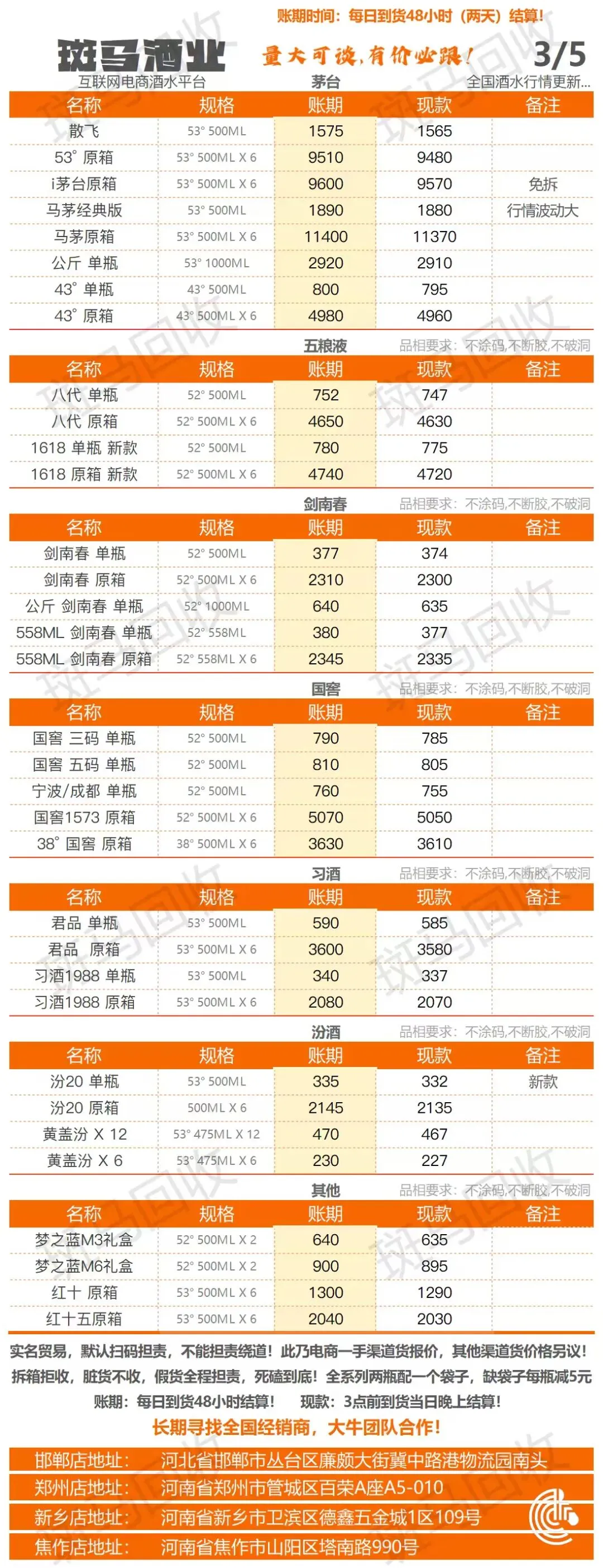 >斑马酒业 26/3/5 采购行情报价