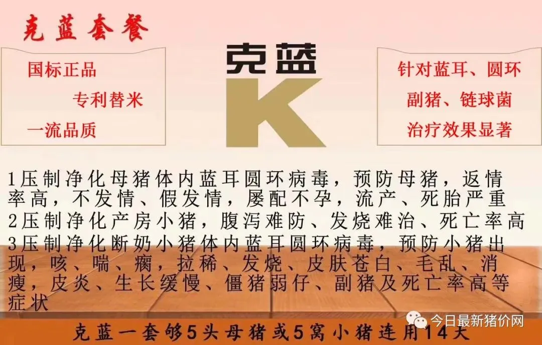 克蓝从去年3月分一直在用,母猪流产死胎这种情况没有了 在今日最新猪价网上看到的广告 ~666