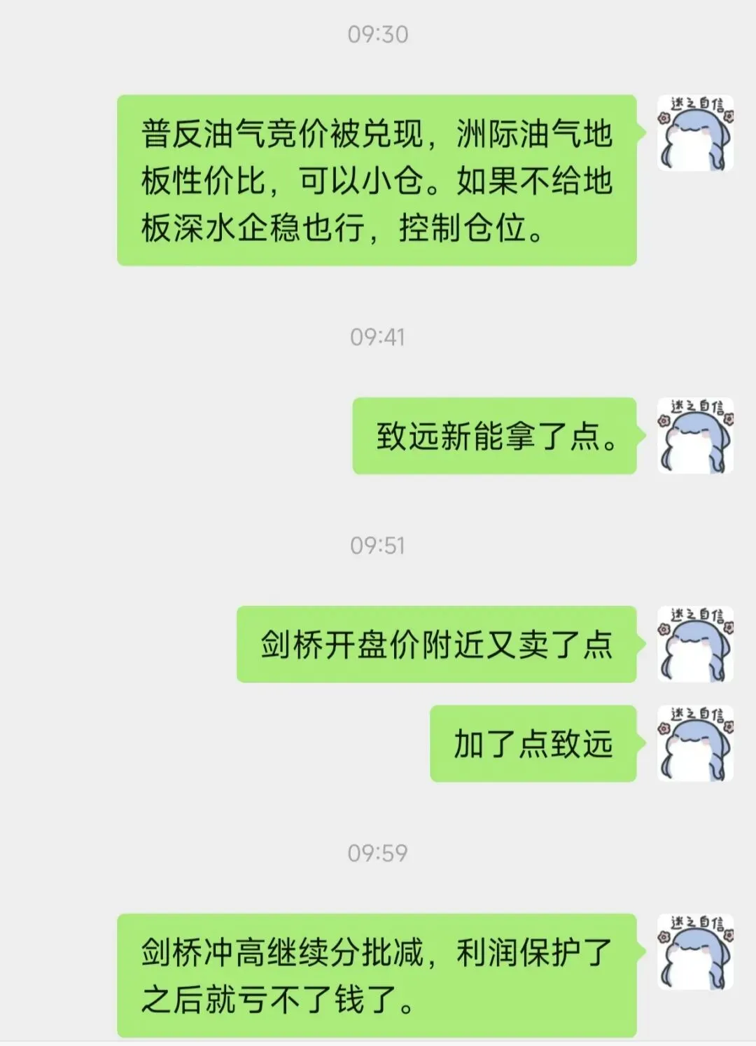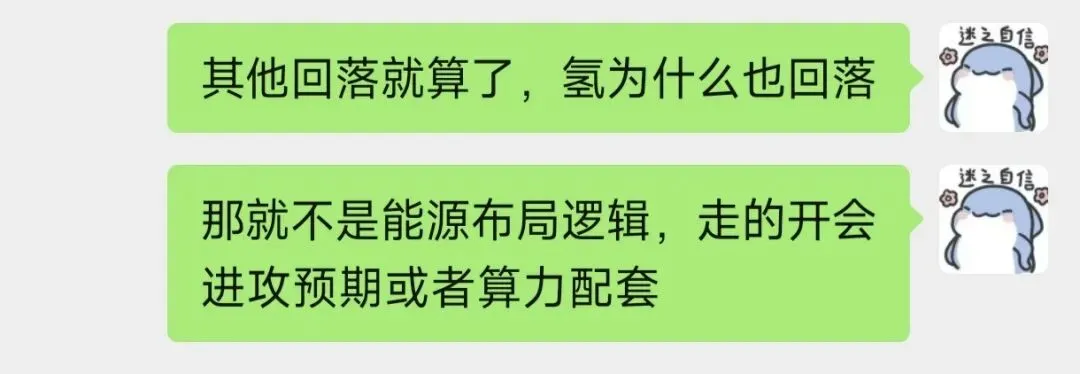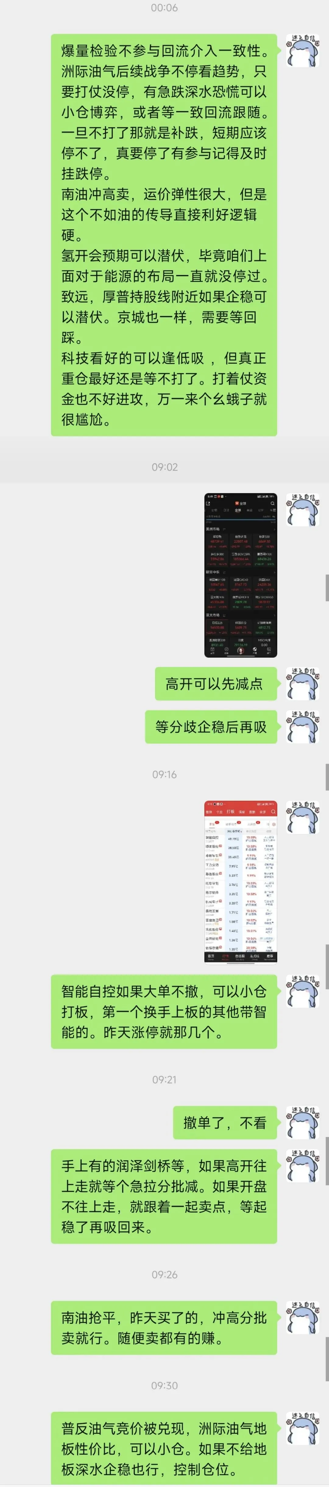 氢早盘计划也有提到,厚普京城表现不错,结果自己吸了个表现最差的致远,如果后续发酵LNG也绕不开,氢产出来总要运吧。就怕后续不发酵,破位了我会止损。明后两天开会应该还会再提,等一等吧。今天涨得有好多油都叠加了氢,但是下午拉油氢有明显的回落,这里怎么理解都行:能源布局陪跑油或做会议发酵预期,一个避险一个进攻