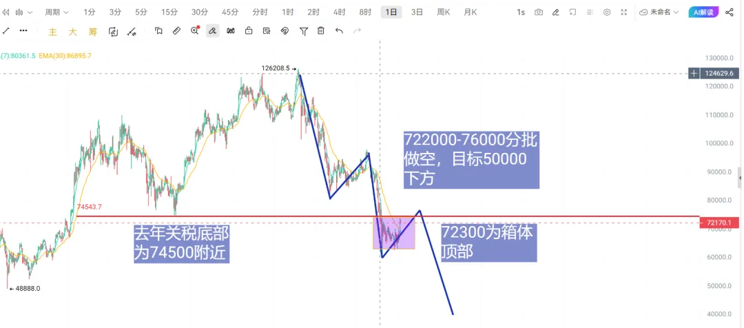 从66128飙至74030,近8000刀涨幅,空头基本洗干净