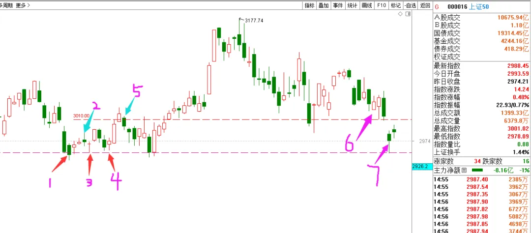 关键时刻拉一下就能改变短期走势,很多时候短期走势是无法预测,比如周三最低点时,如果没有某队护盘,会立马破核心点位,通过50走势图发现,周三最低点正好到1+3的开盘价止跌反弹,你说神奇不?