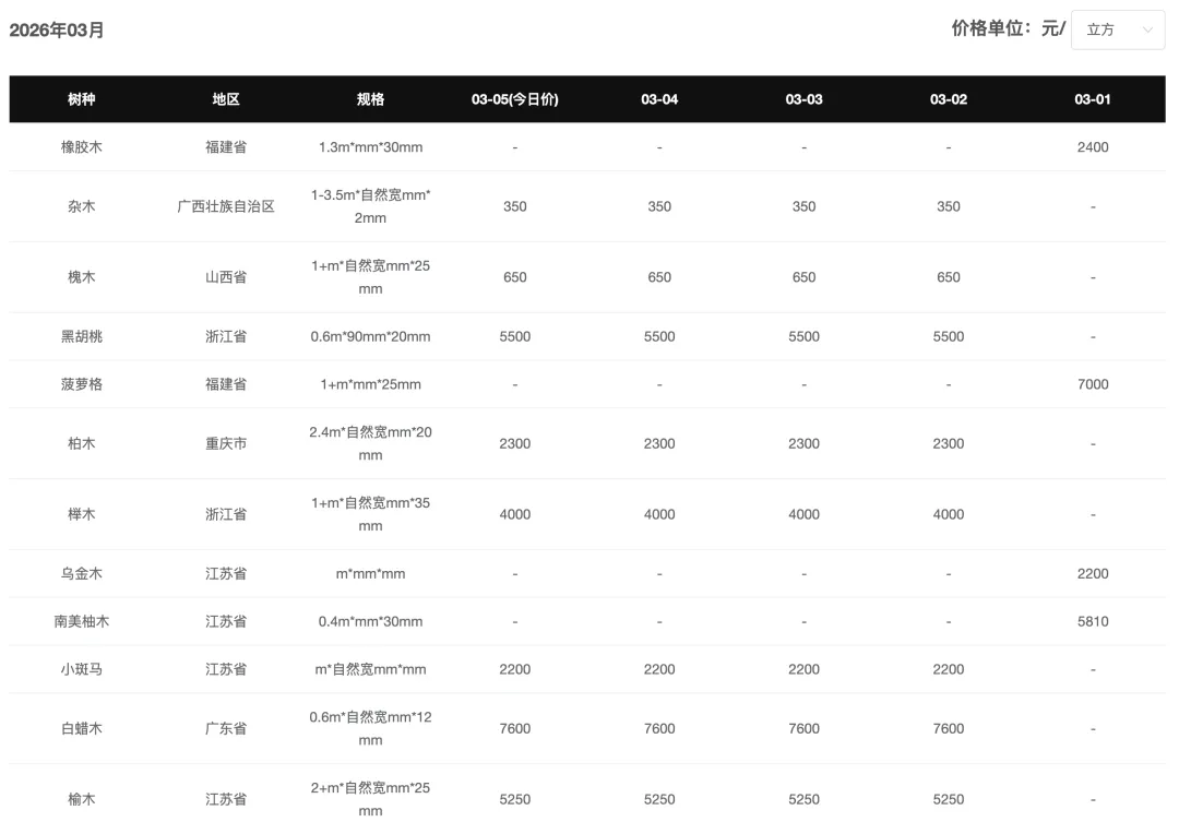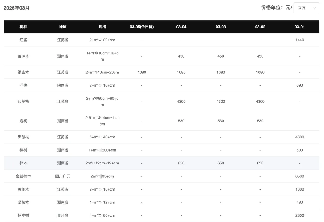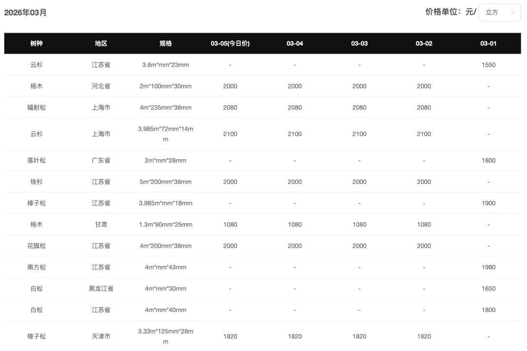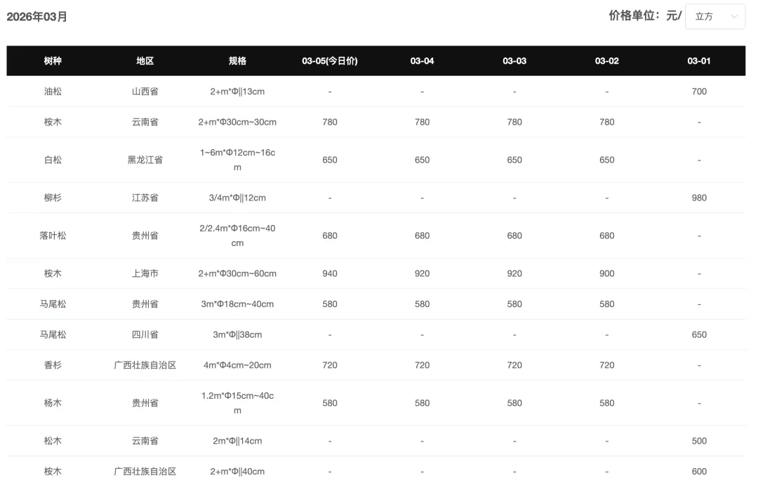 今日松木原木价格整体持稳。其中采木网平台合作报价商——天津地区客户云杉(11.8m,20-28cm)报价1240元/方,贵州黔南地区客户香杉(20+cm)报价750元/方。春节假期过后原木市场成交有限,价格少有变动,整体维持平稳。