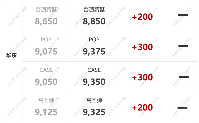 原料PO报盘大幅上涨。供应方面,装置正常运行,厂商按需排产,交投量尚可。下游方面,出口订单平稳交付,内地订单尚未完全恢复,较前期有所下滑,采购整体心态谨慎。