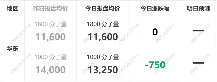 周四,氨纶目前成本端BDO/PTMEG价格偏弱,成本端依旧平稳。广东海宁等地对氨纶需求平平,下游主要常规进货。看好氨纶对BDO/PTMEG的长期支撑,但短期氨纶需求未见明显上涨。截止目前,1800分子量PTMEG主流货源参考价11,200-12,000元/吨。非氨纶领域,浆料清淡运行,近期需求趋势偏弱。TPU偏强运行,下游需求略显疲软。PBT下游装置稳定,但市场供应宽松,价格看空因素较大。截止目前,1000分子量PTMEG主流货源参考价13,000-13,500元/吨,2000分子量PTMEG主流货源参考格12,500-13,500元/吨。