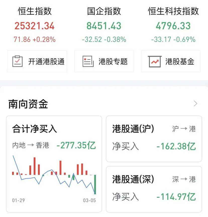 • 南向资金:净流出87.24亿港元,创近期新高,避险情绪明显。