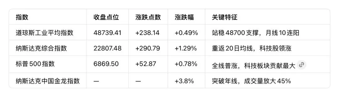 • 关注纳指20日均线支撑(22800附近)、道指48700支撑,量能能否维持放大态势。