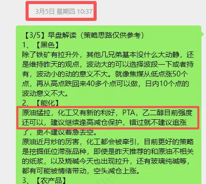 【能化】场内人员建议离场,消息太多,波动剧烈,见好就收。原油这条线,短期再参与,就只考虑期权了。中期继续关注几个和油不相关的品种,尿素,纸浆,烧碱今天早上提过,封板收盘是消息刺激,如果在车上,可以继续跟踪。