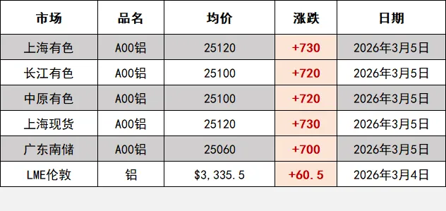 铝价破25000,迎来史高;卡塔尔铝业实施停产,巴林铝业也发布不可抗力,其生产的电解铝无法运出,刺激铝价继续走强,当前中东局势未有缓解迹象,已引发海湾地区铝厂减停产,供应的收紧直接提升铝价;