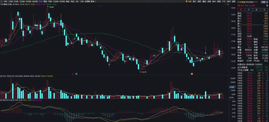 中线票:万丰奥威震荡,午后16.2附近补了点仓位,等轮动即可。