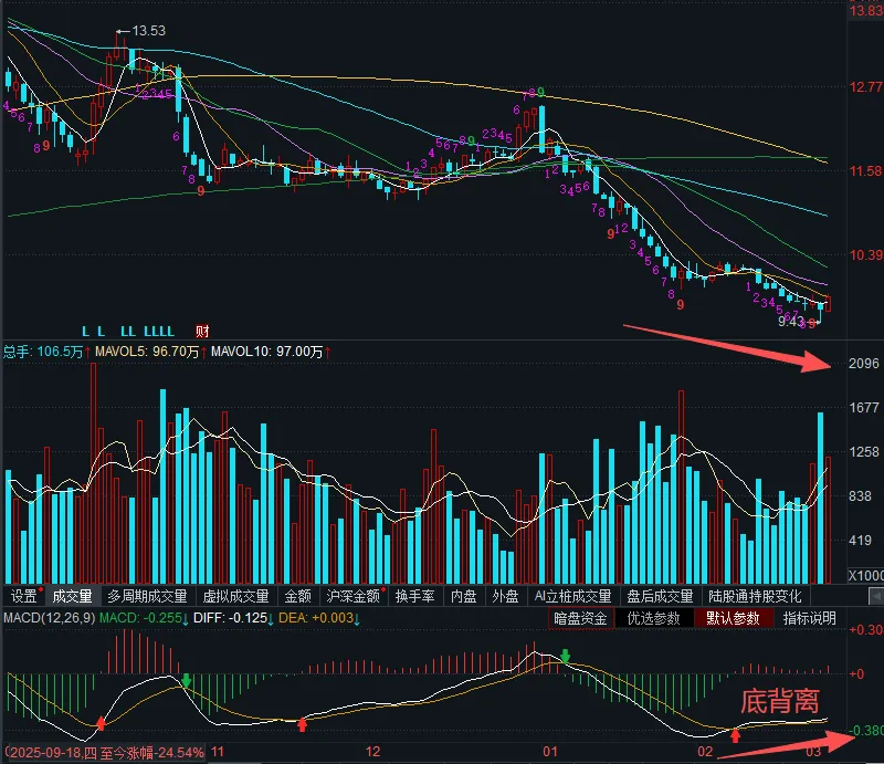 最近一段时间说实话老登股并没有自己之前分析的走得那么好,尤其是我的老登股,最近简直是烂到家了,天天阴跌,连反弹都没。不过目前我依旧不担心,还是之前的观点,该股pe历史百分位已经达到1.6%了,还是业绩下滑的情况下,一旦经济复苏,消费起来了,这个股票市盈率运气好点说不定可以创历史新低。并且最近弱的离奇,感觉就是刻意的打压,如果主力在出货的话是不太可能在这几年新低的位置出货的,而且最近动不动就往下砸的基本都是大单,很多还是在尾盘半小时砸的,大单说明这是主力或者大户的单子,主力可以把大单拆成n多个小单,但散户是没法把小单整合成大单的,另外主力如果想出货,首先得拉高吸引跟风盘,没有跟风盘主力出给谁去?目前这个过程没有,另外,临近收盘市场参与度会降低,这不是个好的出货节点。但是这是个很好的打压吸筹节点,买盘少,只要少量的筹码就可以把股价砸下去,另外macd底背离,股价处于boll下轨仍在,所以当前我依旧选择持有。