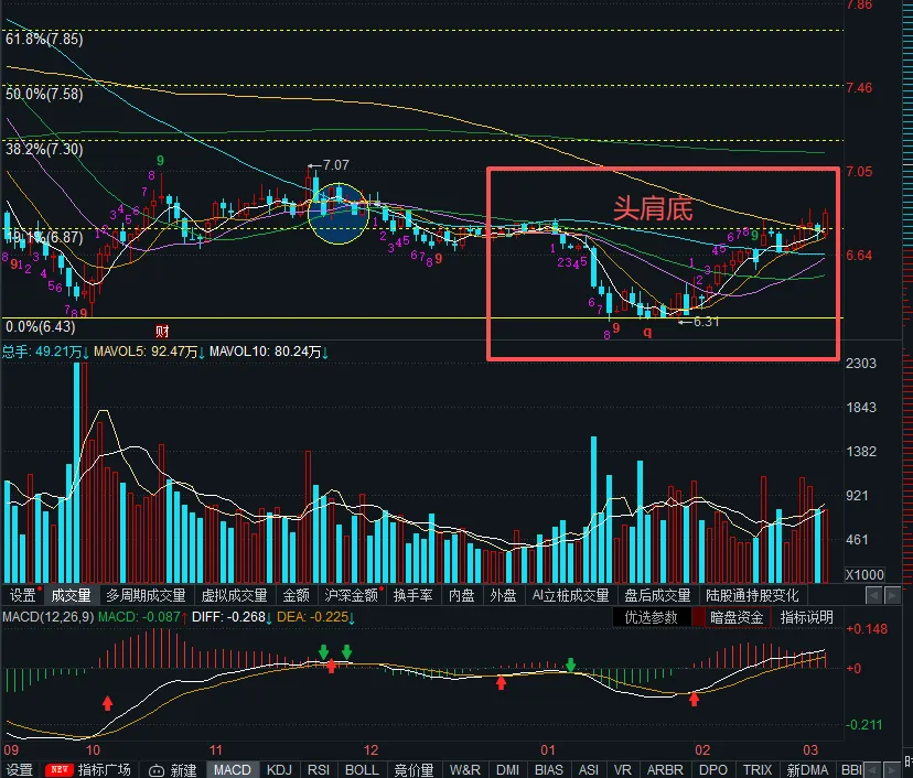 再来说说其他老登板块,比如我之前看好的银行,最近银行的走势还是不错的,包括四大行(估值有点高,盘子实在有点大,先不考虑)。很多股票走出了标准的双底+macd底背离+放量,这个板块我觉得接下来是可以带动指数冲关的。个人建议可以这样配置:1/2的银行+1/4的医药+1/4的酒水饮料,或者1/3的银行+1/3的白酒+1/3的医药,至于科技,有色啥的这类东西真的没啥意思,估值太高了,图形也不好,我是不会去碰的。