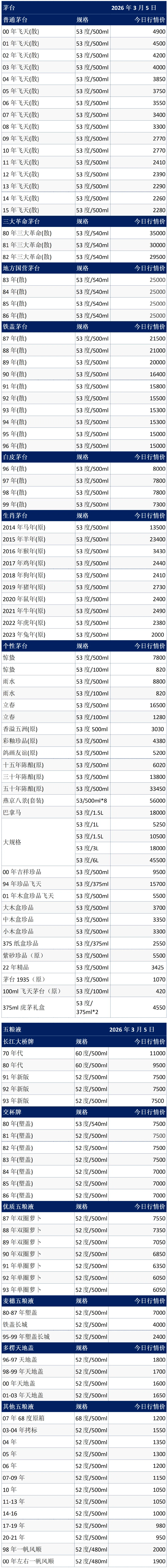 (2)《茅粉行情》提供价格均为商品批发参考价,仅供酒商参考。与市场零售价存在一定价差,与批发成交价也存在一定价差,望请周知。
