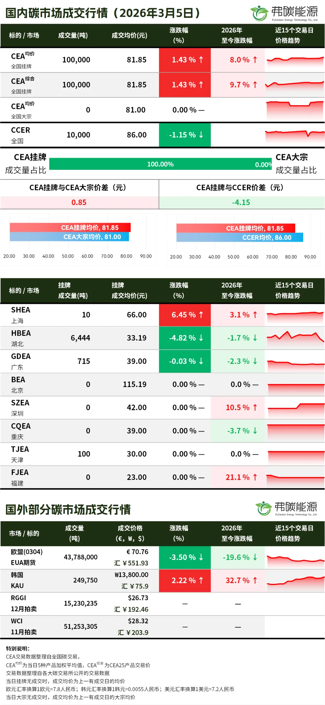 >碳市行情26.3.5 | CEA挂牌成交10万吨,成交均价上涨...