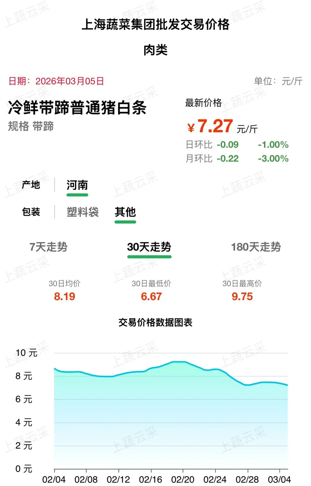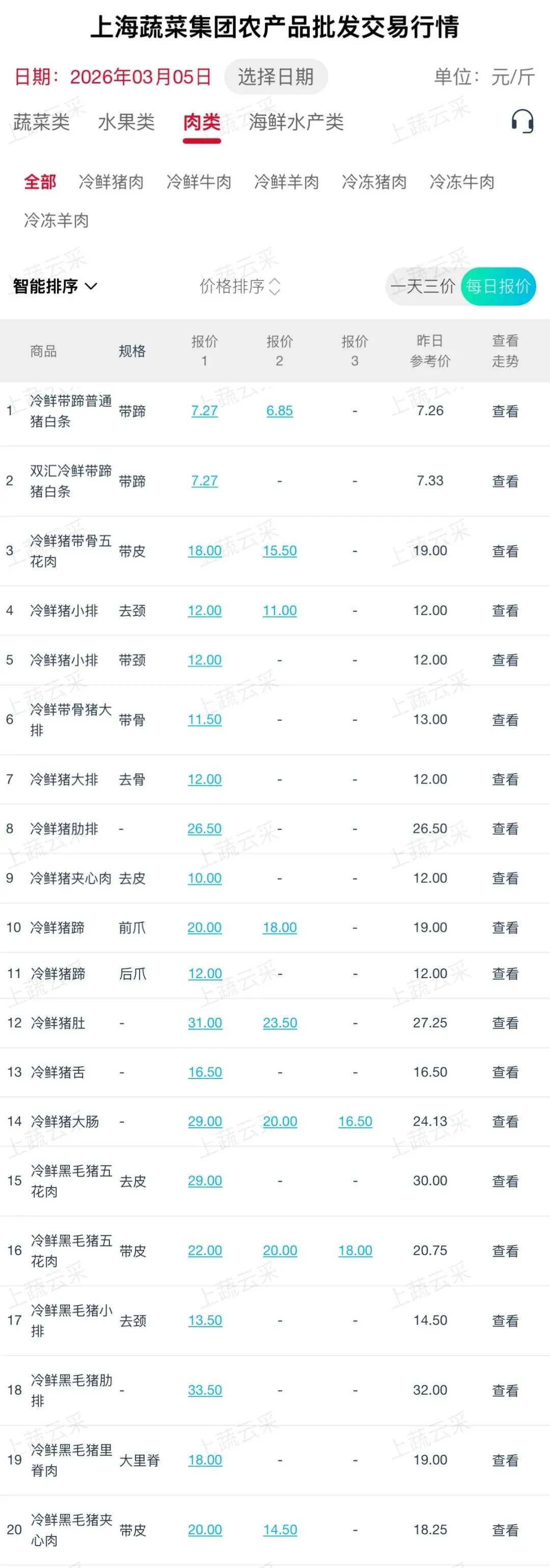 蔬菜、水果、肉、海鲜水产等更多品类交易行情