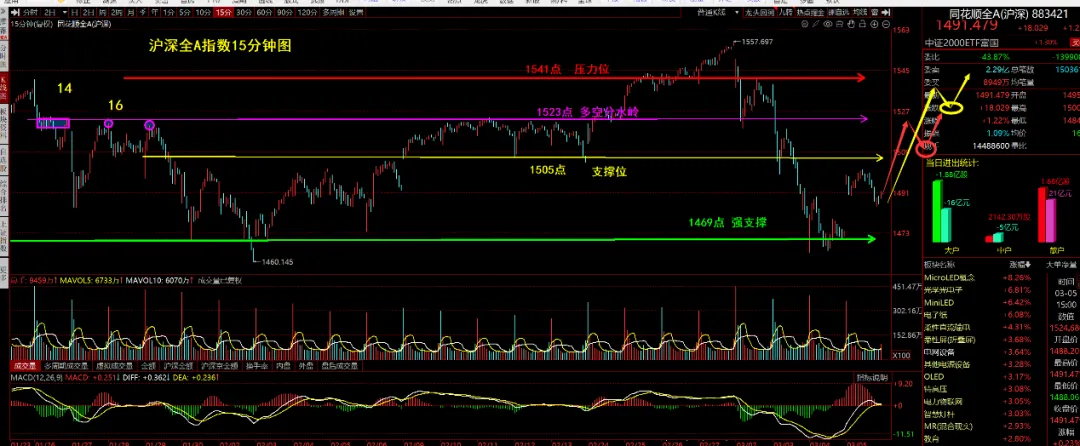 今天两个指数并没有站上5日线,求稳的可以耐心等指数站上5日线再动手,激进的或者说短线技术较好的应该是昨天在我说的强支撑位动手,也就是沪深全A指数1469点附近。